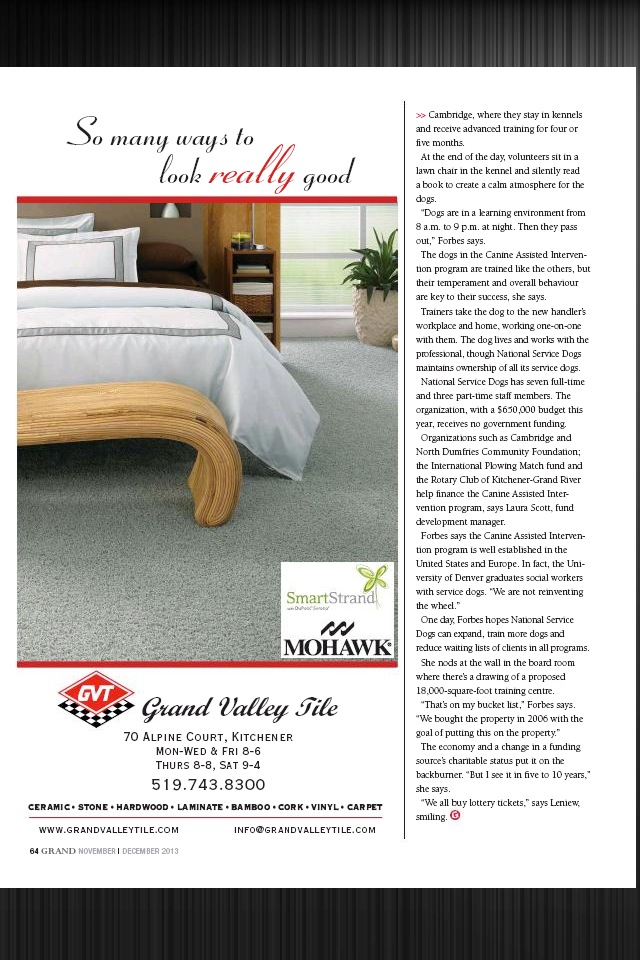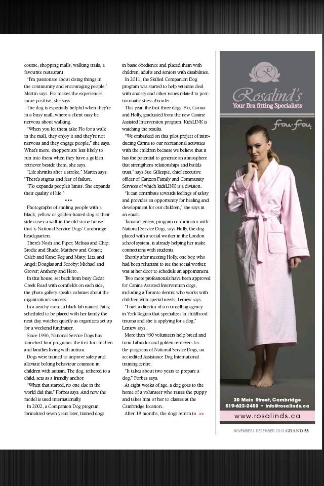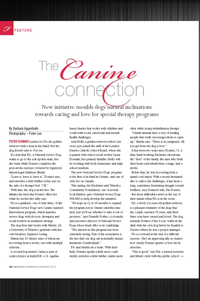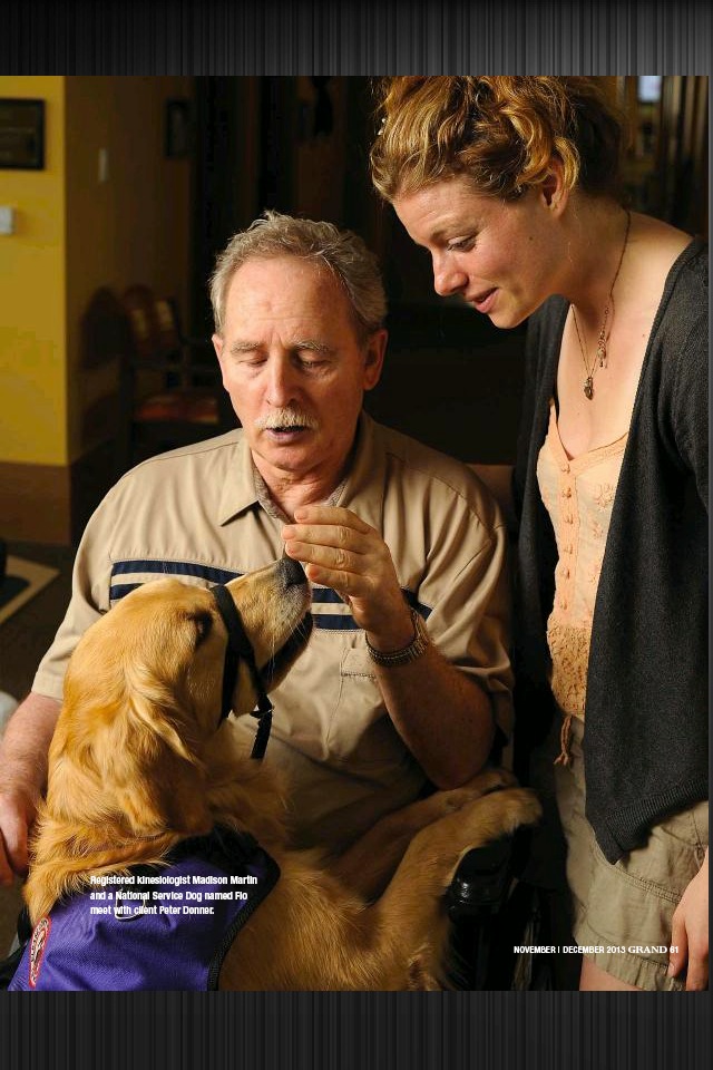 We’re super excited to bring to you this fab article that was written up in last month’s edition of GRAND magazine about the amazing work our CranioSacral Therapist Madison is doing! Madison has been busy in the community helping people with therapy dogs. Check it out below to learn more about her inspiring story!