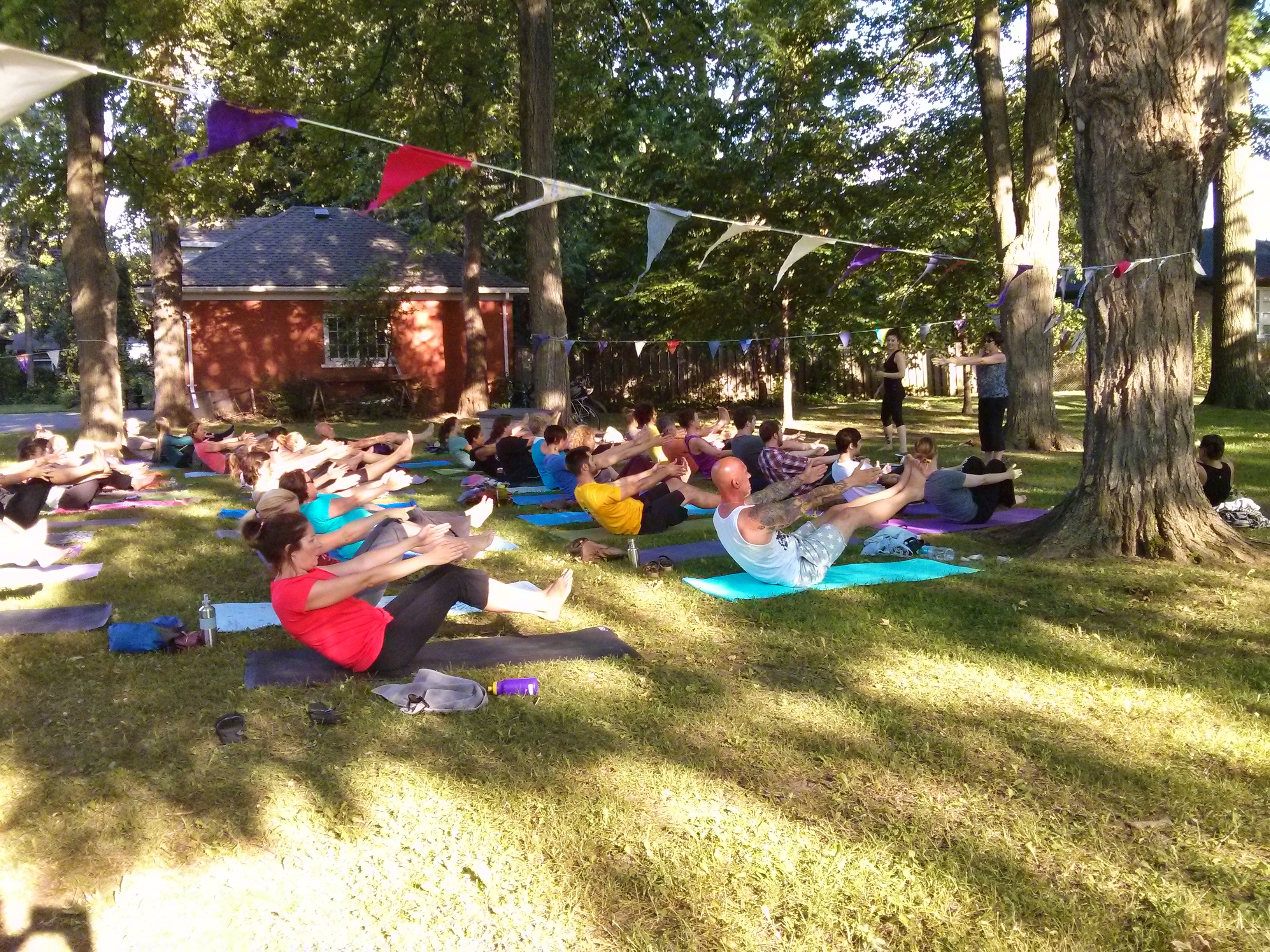 Practicing and teaching yoga outside is a big highlight of my summer. I love to take my own practice to the park as soon as it gets warm, either by myself or with friends. I love how soft and forgiving the grass is when playing around with new things like arm balances or handstands. I love feeling the breeze on my skin and looking up at the tree tops while I’m in a pose. To me yoga is about relationship and connection, and in practicing yoga outside the feeling of connection to the environment and the world is more palpable and sweetly profound. I’ve been teaching yoga outside for the past few years (partnering with the City of Kitchener for Wednesday classes, and sharing Queen Street Yoga love on Sundays) and I love sharing the practice of awareness, breath and movement with new people.