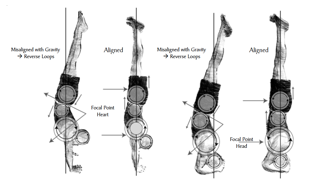 ounds ideal, but finding that vertical alignment can be tricky. The loops give us a map for doing that. “Located in the sagittal plane of the body, the loops reestablish proper alignment with gravity and culminate in organic extension through the core lines of the body,” writes Doug Keller. You can see the upper body loops showing the head balanced over the spine in the drawing to the left.
