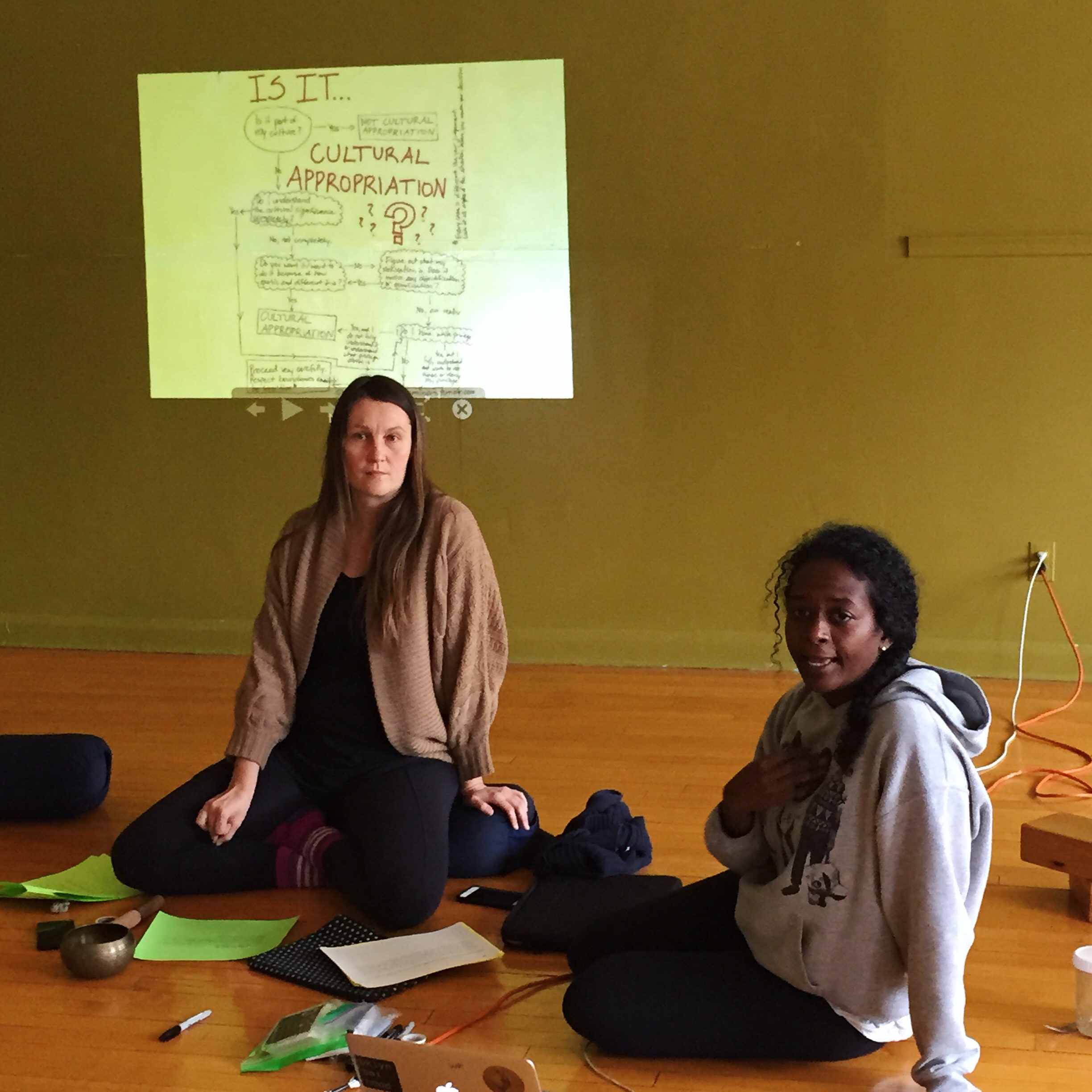When Christi-an Slomka and Jamilah Malika came to speak on “Yoga, Social Justice, and Anti-Oppression”, my goal was to listen with an open mind and an open heart. It’s been my experience that in this way I can combat my natural and human reaction of defensiveness and denial. Certainly I don’t want to hear that yoga is not something that is mine. I don’t want to have my right to it challenged. I don’t want to accept that practising yoga without giving proper homage to its origins is practising a disembodied yoga, a shadow of itself. I don’t want to believe that while I love my yoga, the fact that I see it as ‘my yoga’ may make others feel unwelcome and marginalized.