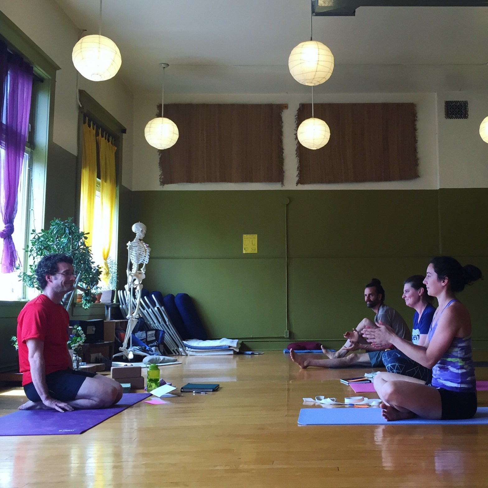 The initiations are the capstone creative project of the program: 30 minutes of solo teaching, with a mission: an intention to serve a specific population, highlight a specific action, and communicate a specific learning goal.