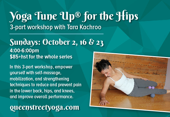 The hip flexors (the group of muscles that bring your leg towards your torso) often have decreased range of motion from all the sitting we do. Simultaneously, your lower back, bum and core muscles get weak from sitting and slumping. This quick video with Leena demonstrates an effective way to gently stretch and regain range of motion in the hip flexors, and emphasizes important actions to engage the core and keep your lower back safe and well aligned. Building the muscles in the back (ie your butt and hamstrings) will also often help correct imbalances around the hips and pelvis that cause the hip flexors to feel “tight”. Couple this stretch with a few sets of well-aligned squats to build your glutes, and also lots of walking with arms swinging and a full stride.