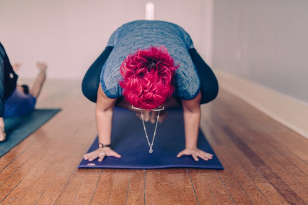 “And if you can’t do crow pose, just know that you’re not as good of a person as everyone else.”